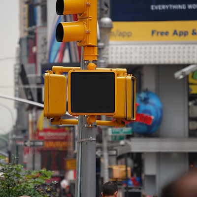 Clip art image of a yellow street light with the square walk/stop walking box that is black, so you can input your own message. Other descriptive terms include, emblem, logo, notice, placard, proof, type, warning, badge, board, cipher, crest, device, ensign, guidepost, insignia, mark, signboard, signpost.