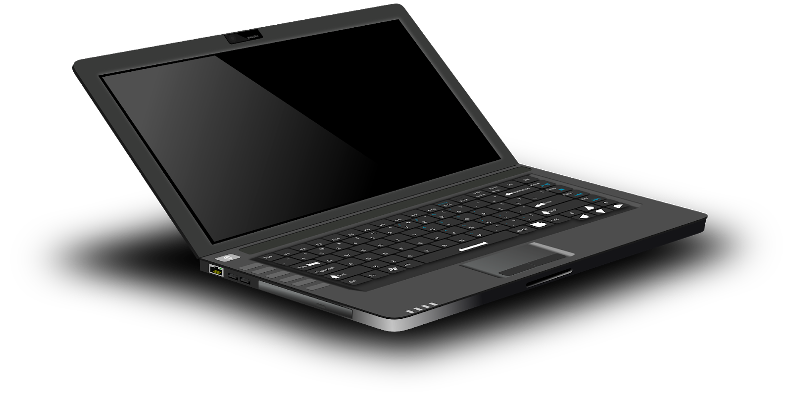Clip art three dimensional vector of a black laptop with a transparent background. Other descriptive terms include transparent, psd, clipart, modern, file, design, element, infographic, technology, free for commercial use, free, freebie.
